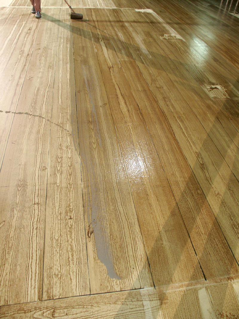 die getrocknete Sägespäne oder Sand werden mit einer Bürste aufgeklopft