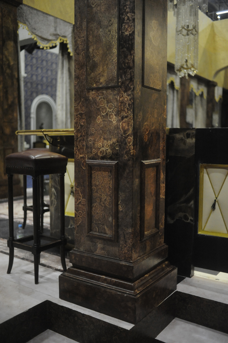 Für den Studiobau Hotel Adlon musste sehr viel Marmor hergestellt werden.Wir mussten eine Methode finden sehr schnell sehr viel Fläche zu bemalen. Der Marmor wurde auf großes Papierbahnen gemalt.