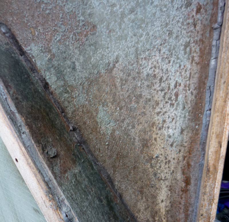 Schweißnähte, Roststellen, abgeplatzte Farbe und Moos
