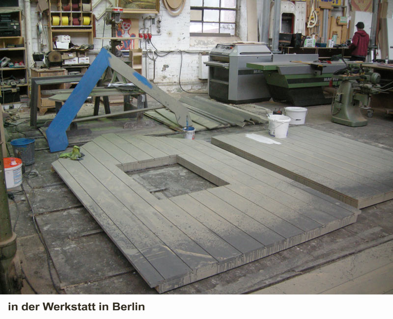 Studiobau zur Fernsehserie "Türkisch für Anfänger", ein Studiobau mit sehr vielen sogenannten Sprungwänden. Sie sind nötig um der Kamera weite Sichtachsen zu ermöglichen. Gerade bei Studiobauten von Serien, die oft und immer wieder genutzt werden, werden Sprungwände viel eingebaut. Damit hat der Kameramann viele Möglichkeiten die Kamera zu positionieren. Dieser Studiobau wurde in einer leerstehenden Fabrikhalle errichtet.