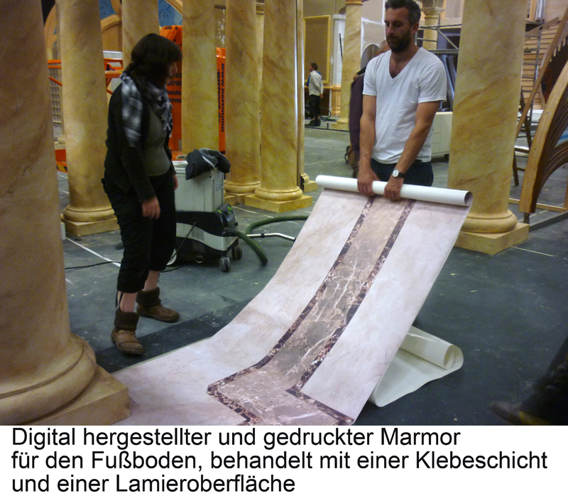 Das gemalte Marmor wird "tapeziert".